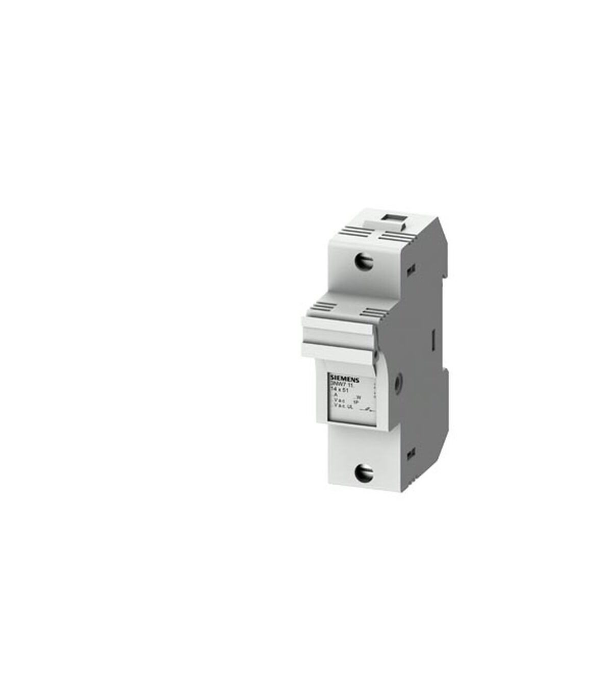SENTRON, base portafusibles cilíndricos, 14x51 mm, 1 polo, Entrada: 50 A, Un AC: 690 V Sistema de fusibles cilíndricos SENTRON para protección selectiva de distribuciones. Los cartuchos fusibles cilíndricos y las bases portafusibles cilíndricos de Siemens son aptas para el uso en instalaciones industriales. Son estándar en Europa y se han ensayado y homologado como fusibles-seccionadores, pero no están previstos para la maniobra bajo carga. Para la maniobra bajo carga, Siemens ofrece una extensa gama, p. ej., 3KF. Los sistemas de fusibles cilíndricos de Siemens se caracteriza especialmente por: 1. Cumplimiento de las normas IEC 60269-1, -2 y -3. 2. Cumplimiento de la norma UL 512. 3. Cambio de fusible con rapidez gracias al espacio para fusibles de repuesto en el módulo extraíble. 4. Detección rápida del fusible disparado por el parpadeo del LED en caso de disparo.